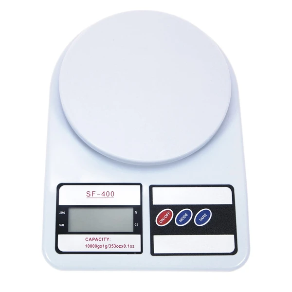ترازو آشپزخانه دیجیتالی الکترونیک مدل SF-400 ظرفیت اندازه گیری تا 10 کیلوگرم را دارد و با توجه به وجود سنسورهای دقیق برای اندازهگیری، میتوان از آن برای اندازهگیری وزن موادغذایی مختلف استفاده نمود. از دیگر ویژگیهای آن میتوان به دقت اندازه گیری 1 گرم آن اشاره نمود و این به معنای اطمینان از کارایی محصول است. روی دستگاه یک نمایشگر برای نشان دادن وزن و سه دکمه قرار داده شده است. از قابلیتهای این ترازو، امکان تبدیل وزن به اونس و گرم است. به عبارت دیگر شما میتوانید وزن را بر اساس اونس و گرم روی ترازو ببینید و تبدیل آن با استفاده از دکمه MODE انجام میپذیرد. دکمه TARE نیز برای صفر کردن ترازو است. همچنین قابلیت خاموش شدن خودکار را هم دارد و در صورتی که مدت کوتاهی بدون استفاده باشد، به صورت اتوماتیک خاموش میشود تا میزان انرژی کمتری را مصرف کند و عمر طولانیتر هم داشته باشد.